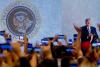 President Donald Trump gave a speech at a student activist conference in front of an altered presidential seal
