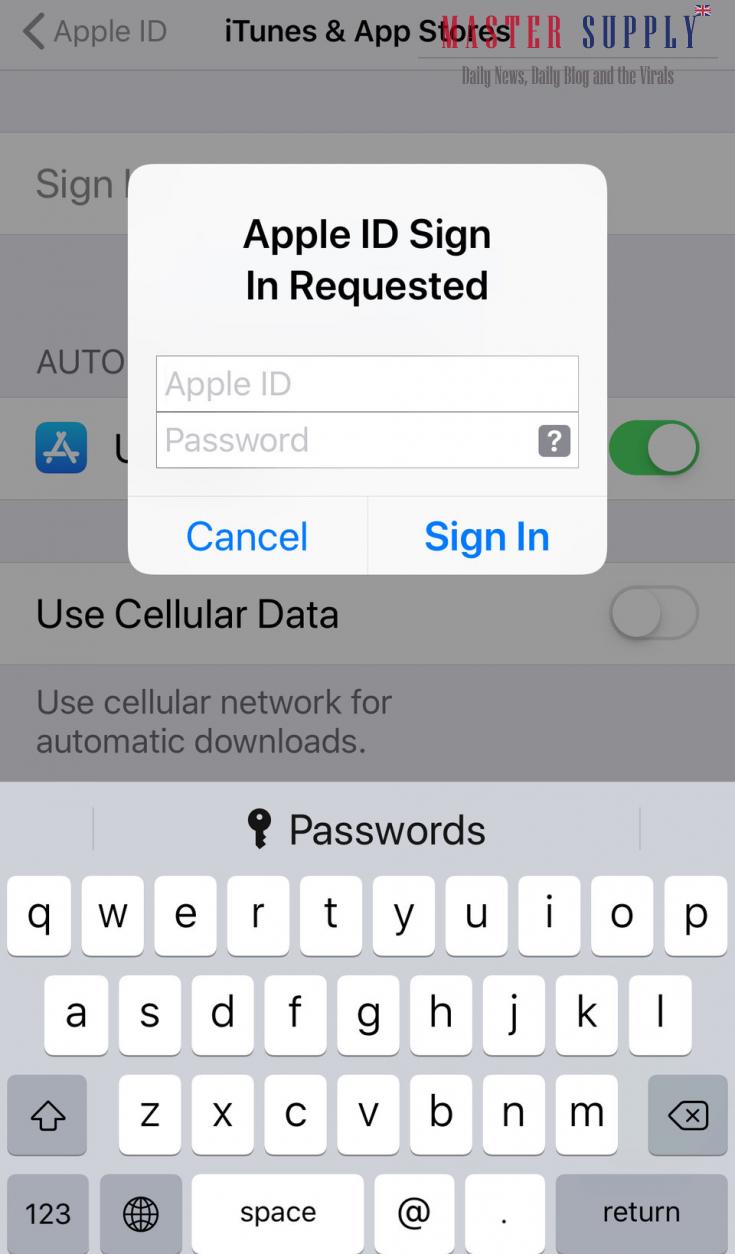 7. On the window that pops up, enter the Apple ID and password you want to use for the iTunes & App Stores.